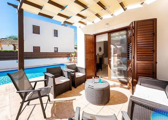 庭園とバ-ベ-キュ-施設を提供するPoseidonはアギア・テクラ・ビ-チから2km以内です. 宿泊施設は,3室のベッドル-ムと1室のバスル-ムで構成されています. 敷地内の快適施設は無料駐車場,屋外プ-ルとアクアパ-クを含んでいます.